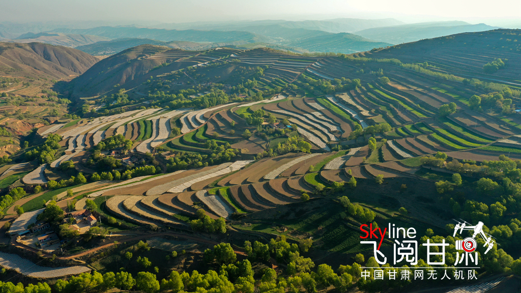初夏時(shí)節(jié),一場(chǎng)雨后的定西市安定區(qū)石泉鄉(xiāng)3000畝標(biāo)準(zhǔn)化農(nóng)田和5萬畝設(shè)施梯田,青山環(huán)抱、線條分明,鄉(xiāng)村點(diǎn)綴其間,在不同的光線下呈現(xiàn)出不同色彩,美如畫卷。