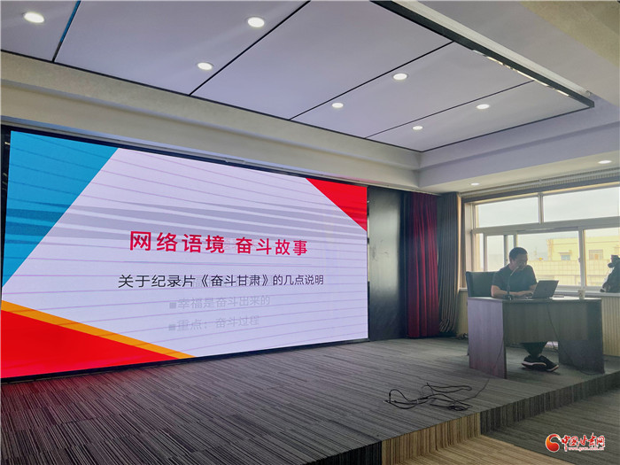 隨后,舉辦了《幸福中國——奮斗甘肅》大型網(wǎng)絡(luò)紀錄片導演培訓會,會議由蘭州電視臺紀錄片創(chuàng)作中心導演趙國鵬作為主講人,中國甘肅網(wǎng)總編輯張振宇主持。
