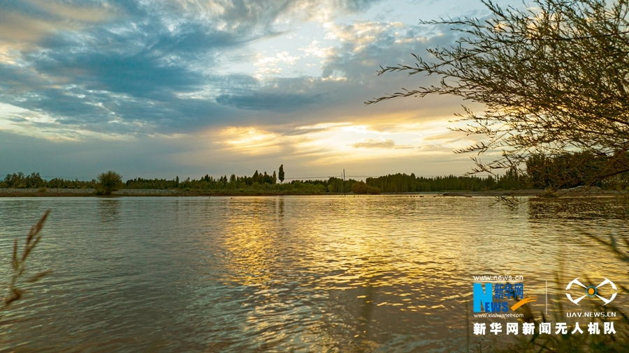 【“飛閱”中國(guó)】甘肅張掖:夕陽(yáng)落黑河