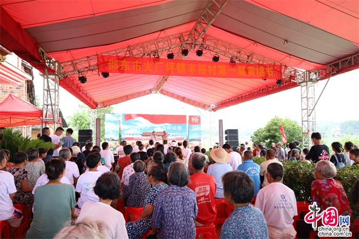 活動(dòng)現(xiàn)場(chǎng),邵東市政協(xié)黨組書記、主席羅健康宣布豐裕村首屆品桃節(jié)開幕。村民志愿者組織游客現(xiàn)場(chǎng)觀桃、品桃。舞蹈、花鼓戲、歌曲等由村里組織編排的精彩節(jié)目輪番上演,以文藝形式現(xiàn)場(chǎng)說(shuō)桃、唱桃,贏得了觀眾的陣陣掌聲。豐裕村黃桃鮮嫩多汁、香甜可口,吸引游客紛紛前去基地摘桃、購(gòu)桃,將活動(dòng)氛圍推向高潮。當(dāng)天,共銷售黃桃1萬(wàn)余斤,銷售金額9萬(wàn)余元。