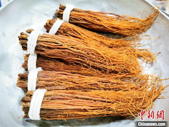 資料圖為用小棉繩捆扎好、按克銷售的參絲。 中新社發(fā) 李曉春 攝