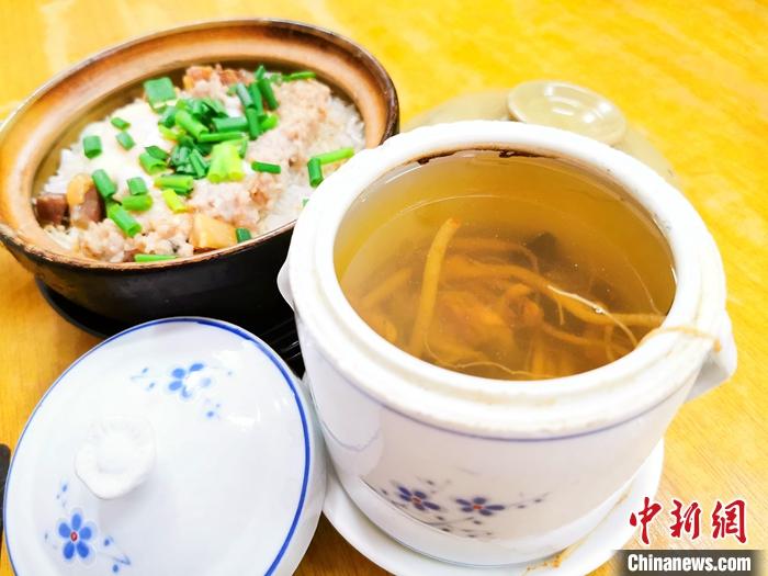 資料圖為特色煲仔飯搭配原盅參絲燉湯,是廣東臺山部分食客的選擇之一。 中新社發(fā) 李曉春 攝