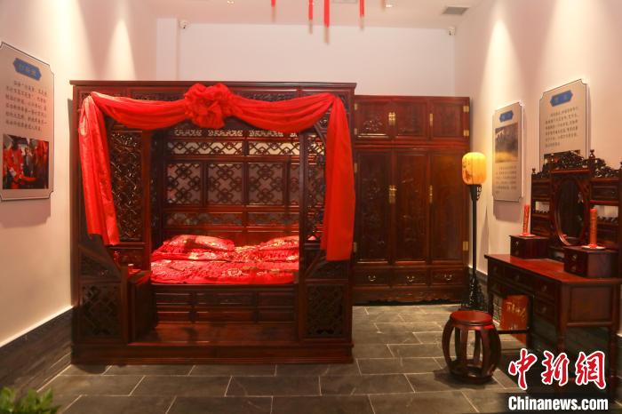 圖為博物館內(nèi)布置的中式傳統(tǒng)風格新婚洞房?!⒘?nbsp;攝