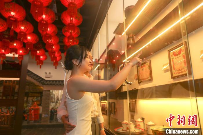8月4日,正值“七夕”佳節(jié),探訪位于江西南昌青山湖區(qū)婚姻登記處的贛鄱婚俗博物館,一些新人和市民正在參觀展覽。這是江西首個全部以婚俗為主題的博物館,選取了江西各地最具特色的婚俗禮儀進行展示,通過不同時期的婚禮習俗以及婚書、陪嫁的箱子、食盒、電視等老物件,展現(xiàn)贛鄱百姓的民俗生活,喚起人們對傳統(tǒng)婚俗禮儀的記憶。