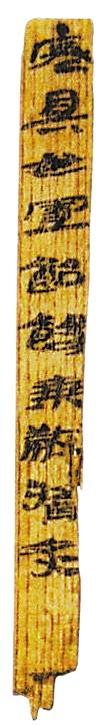 1990年這枚木簡出土于敦煌懸泉置遺址,現(xiàn)藏甘肅簡牘博物館。長7.7厘米、寬0.8厘米、厚0.2厘米。木簡下部殘缺,字跡清楚,簡文作“寒具毋置飴餳乘□醬炙”,其中提到的“飴餳”即兩種糖類之名,該簡文為研究兩漢時期河西飲食習俗和制糖史提供了資料。
