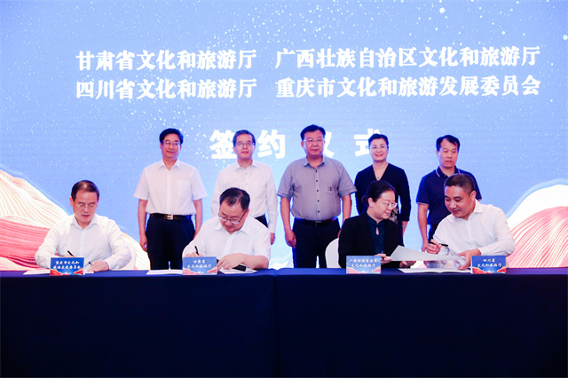 ——“環(huán)西部火車游”。“環(huán)西部火車游”是由甘肅省文旅廳與中國鐵路蘭州局集團(tuán)公司于2018年4月聯(lián)合推出的鐵旅融合王牌旅游產(chǎn)品,被譽(yù)為陸上郵輪、夢想旅游專列。甘肅省文旅廳聯(lián)合中國鐵路蘭州局集團(tuán)于2020年5月1日串起敦煌到隴南12個(gè)站點(diǎn),打通了省內(nèi)小環(huán)線;8月1日開始跨省推廣,打通了甘川渝陜寧青“1+5”中環(huán)線;10月1日從甘肅到廣西再到新疆,途經(jīng)九省區(qū)市8000公里,形成了連接“陸海絲”、對接?xùn)|盟與中亞的大環(huán)線。其中,2020年下半年,由省文旅廳牽頭跨省跨界組織開展了聲勢浩大的“聯(lián)通陸海絲·助推雙循環(huán)”——甘肅文旅“環(huán)西部火車游”主題推廣營銷活動,合力奏響文化和旅游系統(tǒng)“你中有我、我中有你”的大聯(lián)動、大協(xié)作、大發(fā)展“交響曲”,成功實(shí)現(xiàn)了“環(huán)西部火車游”連接聯(lián)通陸上絲綢之路和海上絲綢之路大環(huán)線的預(yù)期目標(biāo)。此主題推廣營銷活動獲評“2020年度中國文旅營銷創(chuàng)新典范”,入選2020年國內(nèi)旅游宣傳推廣典型案例,“環(huán)西部火車游”產(chǎn)品因此更加走紅走俏。2018—2021年,“環(huán)西部火車游”累計(jì)開行專列178列,組織游客15.67萬人,實(shí)現(xiàn)旅游收入1.37億元。2022年,省文旅廳與平?jīng)鍪姓?、中國鐵路蘭州局集團(tuán)合作,開通運(yùn)營“環(huán)西部火車游·崆峒號”品牌列車,從蘭州出發(fā)至平?jīng)雒恐芡颠\(yùn)行一趟,著力打造交旅融合的“平?jīng)鰳影?rdquo;。