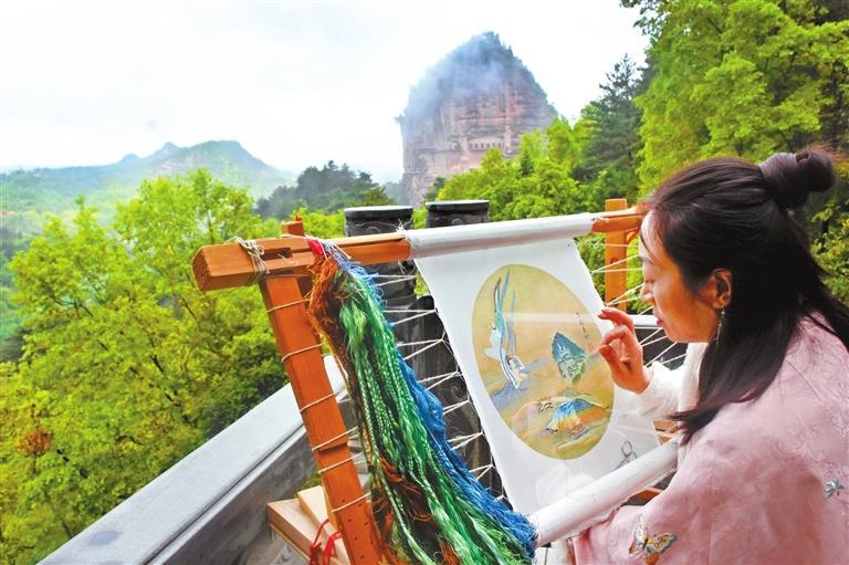 “應用現(xiàn)代審美思維創(chuàng)作出麥積山石窟系列刺繡文創(chuàng)作品,麥積刺繡藝術品的觀賞價值和實用價值會進一步凸顯。”曹苑春說。除此之外,畫繡、雙面繡團扇、香包、刺繡宮燈、刺繡擺臺等作為裝飾生活的藝術品,已被很多人所喜愛,刺繡作品正以全新的面貌走入尋常百姓家。