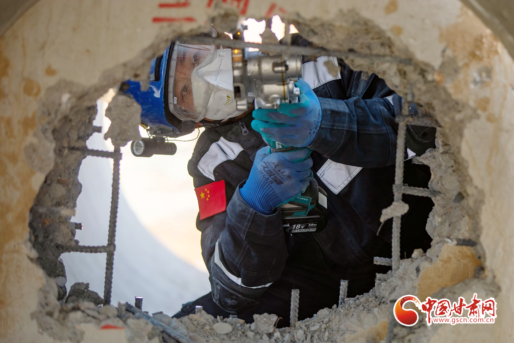 培訓隊員正在開展狹小空間破拆訓練