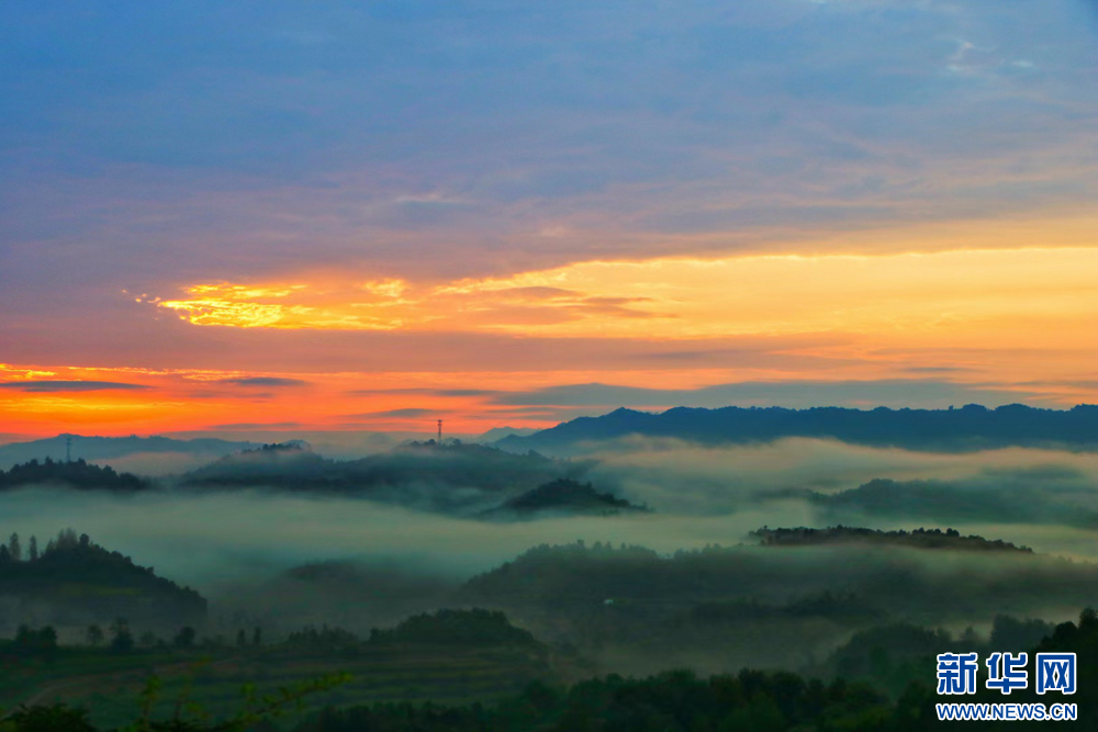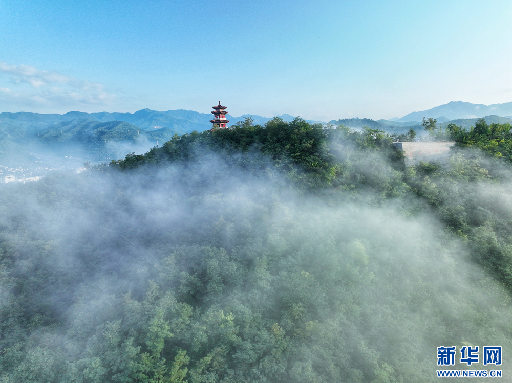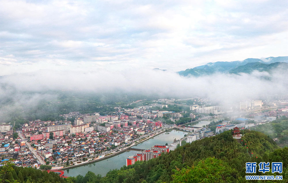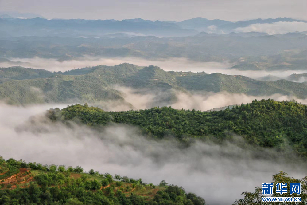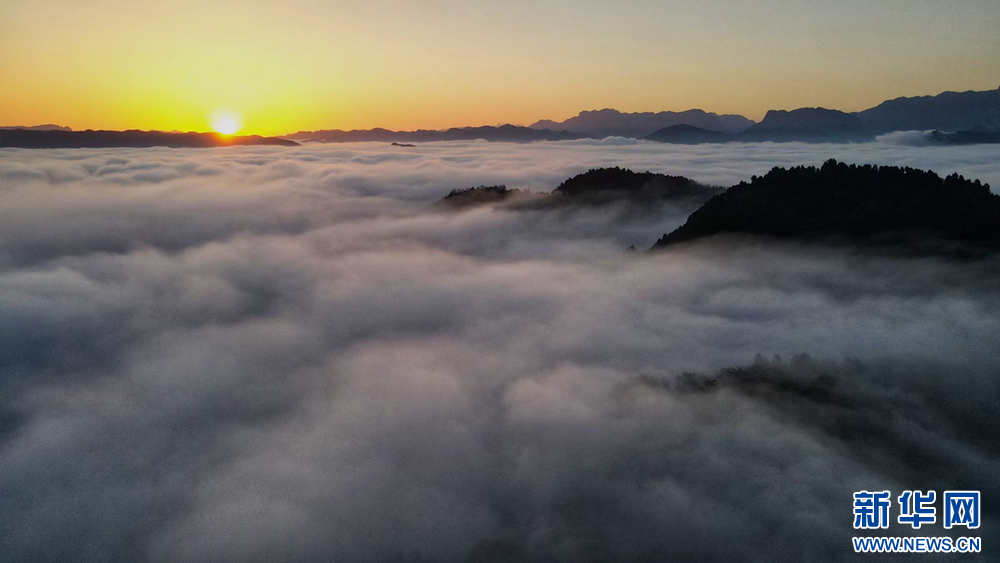 近日,甘肅省隴南市兩當(dāng)縣上空云霧繚繞、煙波浩渺,縣城、山峰在霧海中若隱若現(xiàn),陽光從云霧間掠過,勾勒出一幅幅如夢如幻的美麗畫卷。新華網(wǎng)發(fā)(楊曉 攝)