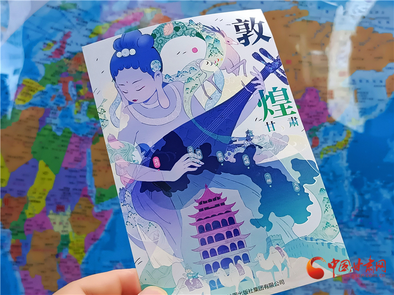 中國地圖出版社新媒體編輯劉堯表示,這是他們特意為這次來敦煌參加數(shù)字出版博覽會(huì)設(shè)計(jì)的。敦煌是飛天的故鄉(xiāng),一張小卡片不僅有飛天的問候,更有甘肅的廣袤。