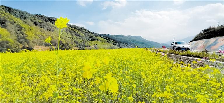 金秋時節(jié),沿太子山旅游風(fēng)情大通道臨夏縣段景色如詩如畫,油菜花、墻體彩繪與遠山、藍天白云相映成輝,令人賞心悅目。