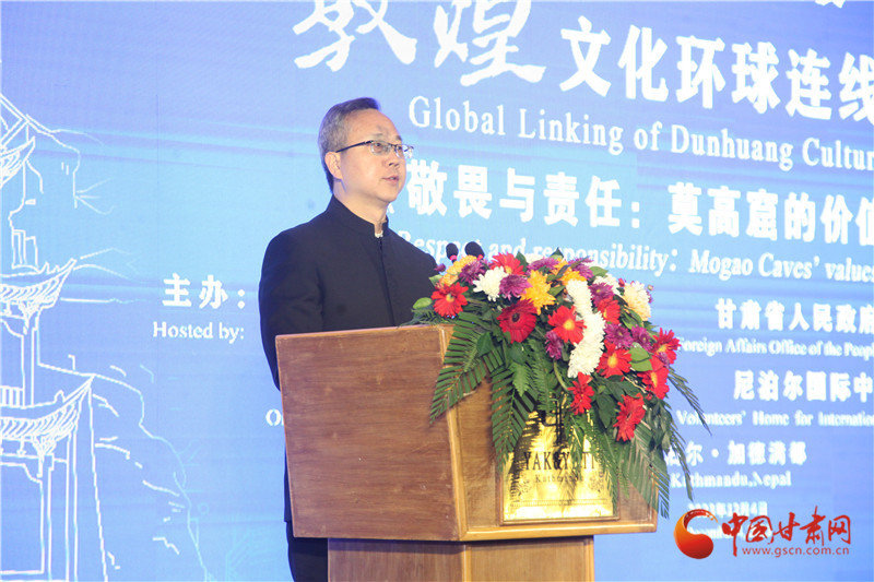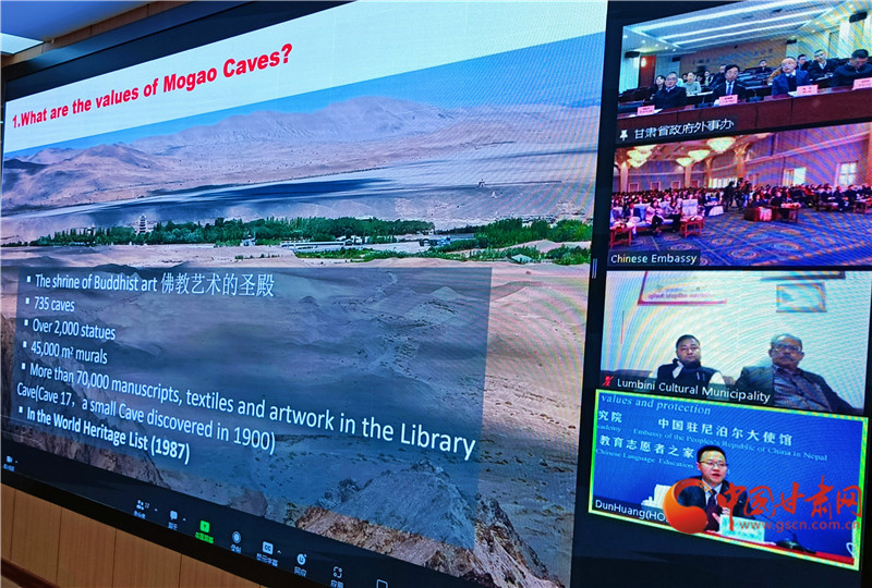 中國甘肅網(wǎng)12月4日訊(西北角·中國甘肅網(wǎng)記者 宋芳科 )12月4日,“敦煌文化環(huán)球連線——走進(jìn)尼泊爾”在蘭州、敦煌、尼泊爾三地線上線下同步舉辦。中國駐尼泊爾大使陳松、尼泊爾教育與科技部部秘普拉米拉·黛維·巴吉拉恰利亞,酒泉市委常委、敦煌市委書記石琳、尼泊爾藍(lán)毗尼文化市市長薩魯丁·穆薩爾曼等應(yīng)邀出席活動(dòng)并講話,活動(dòng)由甘肅省政府外事辦主任張寶軍主持。