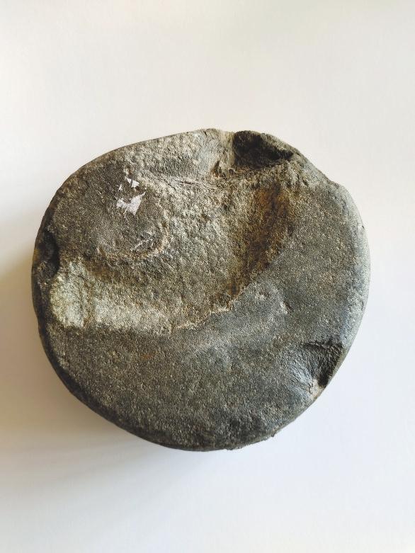 齊家文化的“盤狀石器”除“敲砸器”以外,還有一點比較特殊,其雙面分別琢制有日紋和月紋。目前所知,這類“盤狀石器”只在齊家文化遺存中出現(xiàn),是齊家文化石器的特有器型,石質(zhì)大多為礫石、河礫石。這種齊家文化特有的琢紋盤狀石器,學(xué)界尚未有統(tǒng)一命名,通常所見為:“圓形見手窩敲砸器”“刻符石”“刻符石器”。民間俗稱為:“練功石”“日月石”“星月石器”等。