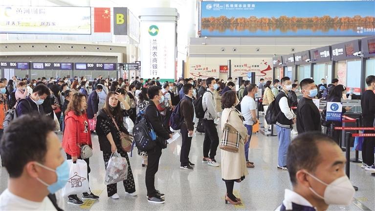 旅客排隊辦理值機 □照片由省民航機場集團(tuán)提供