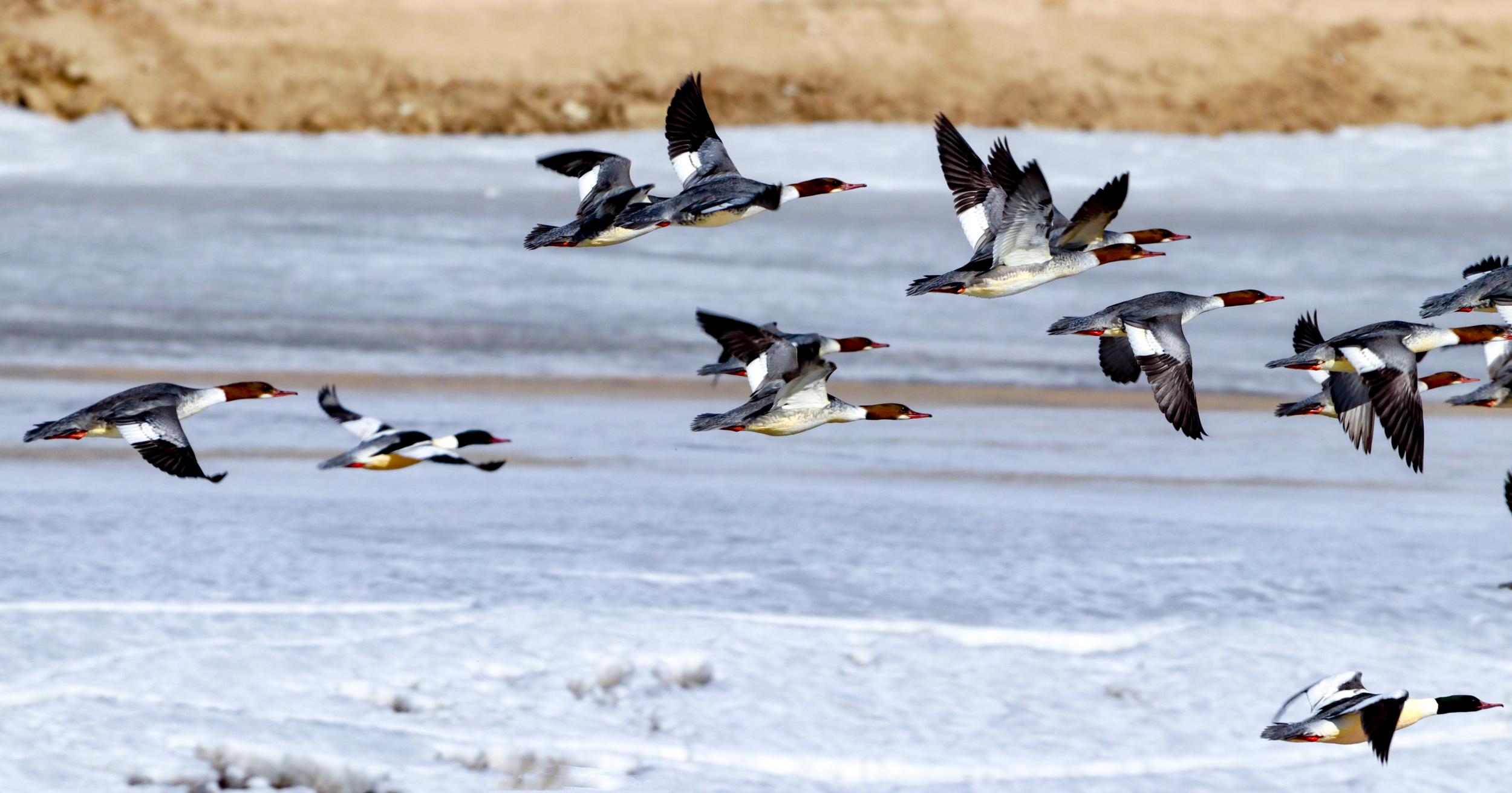 崇信:成群鳥兒舞蹁躚 冬日汭河景色美