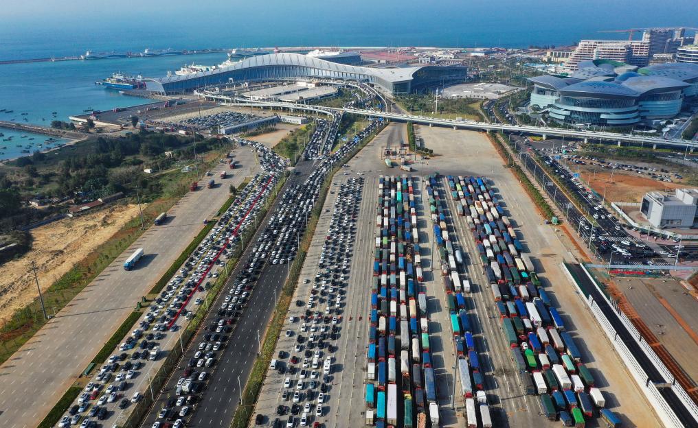 ??谑薪煌ㄟ\(yùn)輸和港航管理局發(fā)布的信息顯示,截至2月19日15時(shí),預(yù)約出島小車總數(shù)約2萬輛,已運(yùn)送出島約1萬輛,全天預(yù)約待出島約1萬輛。新海港港區(qū)和港外待渡車場(chǎng)呈現(xiàn)飽和狀態(tài),疏運(yùn)仍需較長時(shí)間。