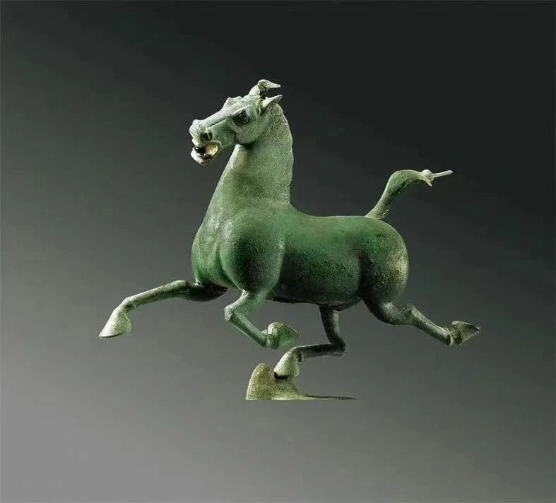 銅奔馬高34.5厘米,長45厘米,寬13.1厘米,重7.3千克,三足騰空,一足超掠飛鷹,昂首長嘶,以矯健之姿疾足飛馳,僅一足著力支撐起馬身,展現(xiàn)了當(dāng)時極其卓越的工藝水平。