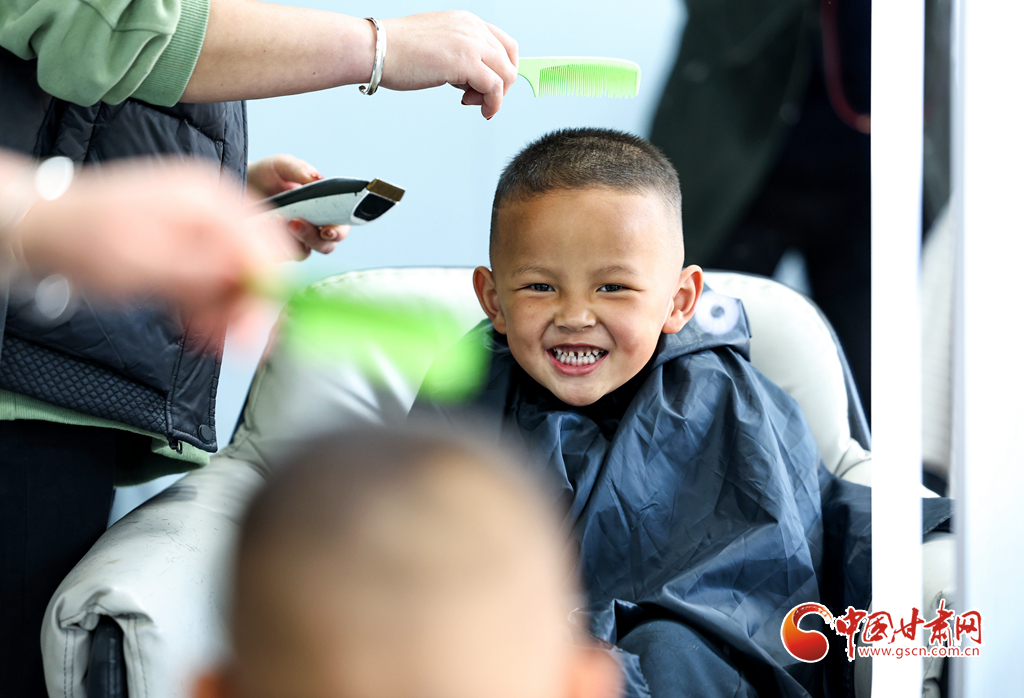 3月11日,在臨夏市一理發(fā)店內,理發(fā)師正在為一名小朋友“剃龍頭”。當日,是農歷二月初二,許多家長帶著孩子到理發(fā)店理發(fā),希望孩子能健康成長,日后出人頭地,為新的一年討個好彩頭。