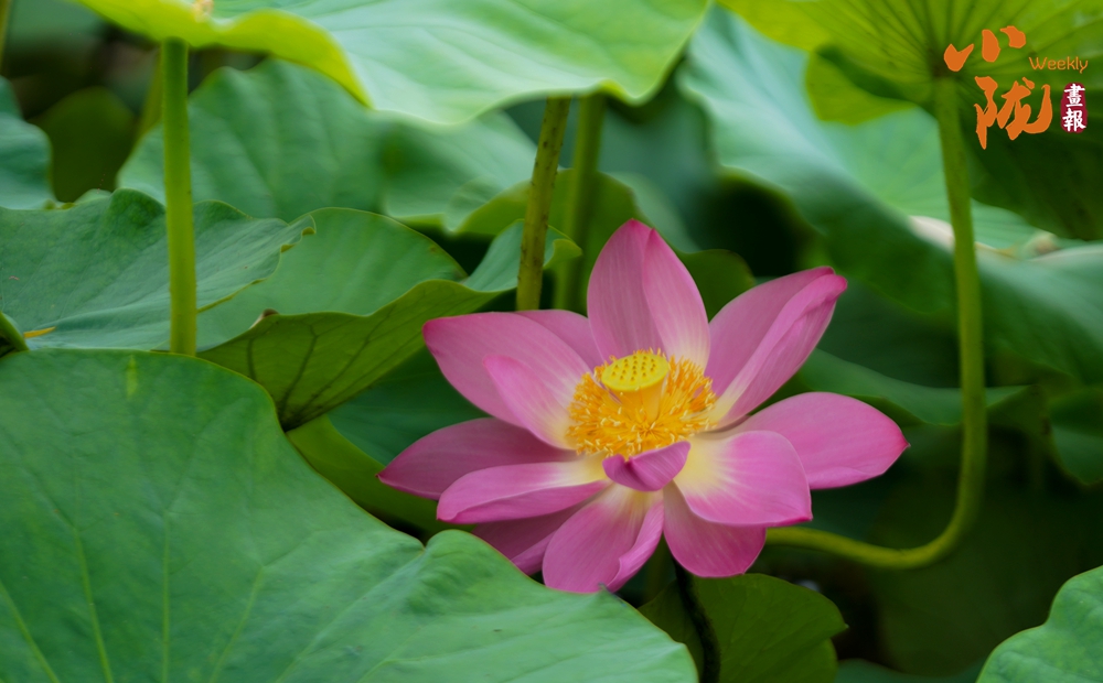 荷花如約綻放,翠葉如蓋,紅黃菡萏,開(kāi)合天真,尤其一場(chǎng)雨后,更顯嬌艷。