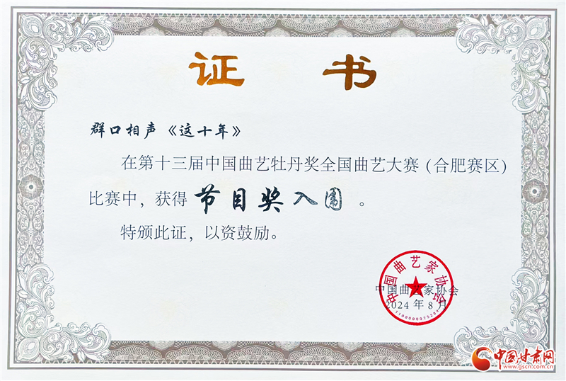甘肅本土群口相聲《這十年》獲第十三屆中國(guó)曲藝牡丹獎(jiǎng)文學(xué)和節(jié)目雙入圍獎(jiǎng)