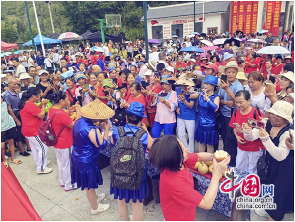“今天的活動(dòng)非常熱鬧,我聽(tīng)說(shuō)補(bǔ)戈村的金秋梨好吃,所以今天特地來(lái)嘗一下,真的是又大又甜,我啃了幾大口了都還沒(méi)吃完……”坪場(chǎng)上,游客彭秀芳興奮地向周圍的人描述著補(bǔ)戈金秋梨的甜美。