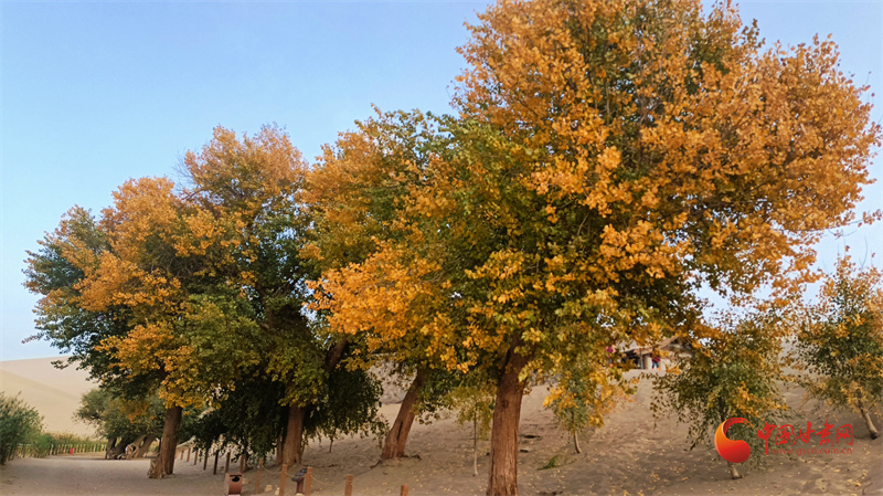 時下,鳴沙山月牙泉景區(qū)換上了斑斕的秋裝,如同調(diào)色盤上的色彩隨意揮灑,繪就了一幅幅令人心曠神怡的秋日畫卷。
