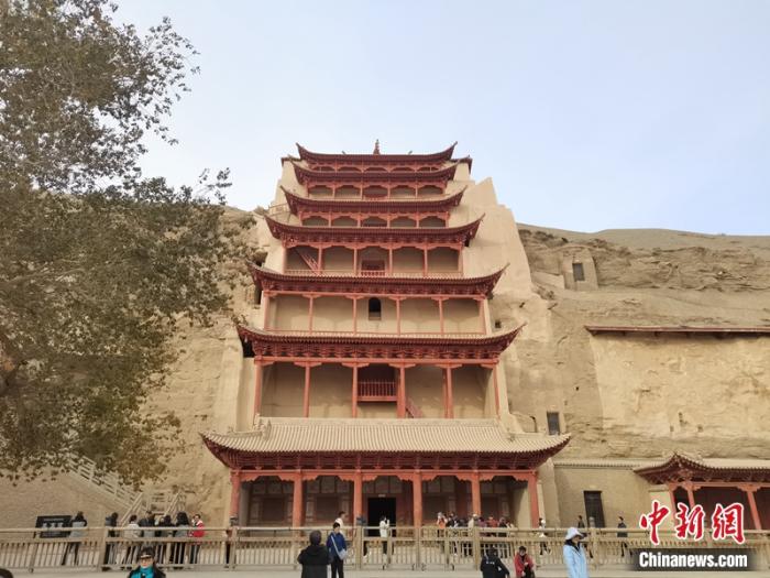 游客在敦煌莫高窟參觀。記者 上官云 攝