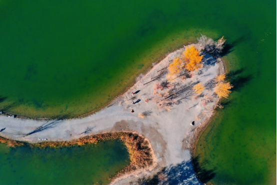 金波湖是金塔胡楊林的心臟,是臨水胡楊的最佳拍攝地之一。湖面倒映著胡楊高大的身影,多姿的樹干,黃色的樹葉,都毫不保留地在水中展示出來。小橋流水、碧波蕩漾、白鵝嬉戲,若不是周邊金黃色的胡楊提醒,會讓人誤以為來到了江南水鄉(xiāng)。