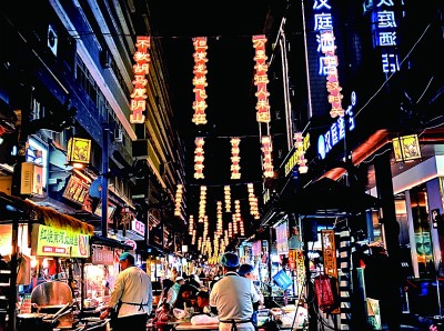 沿著夜市向東走去,北邊的巷道里則是另一番景象??諝庵谢祀s著紅柳大串兒的肉香、油壺喧的面香、羊肉湯的鮮香……勾得游人味蕾大開,這就是大眾巷新光夜市了。