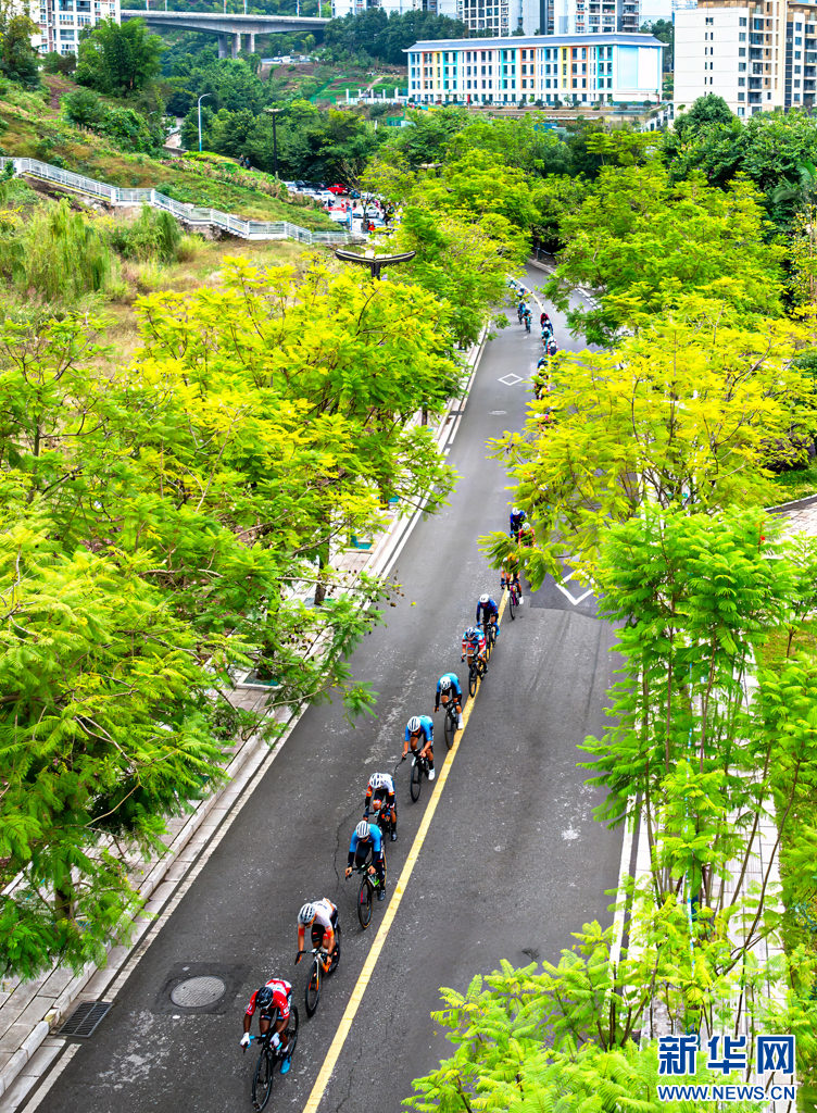 2024環(huán)昭通國際公路自行車賽(綏江—水富賽段)比賽現(xiàn)場(11月8日攝)。新華網(wǎng)發(fā)(曾三東 攝)