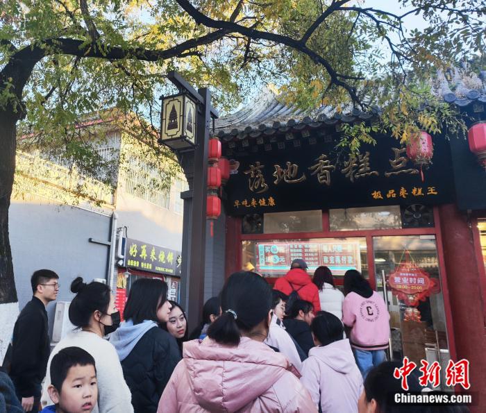 漁陽古街上,游客正排隊購買一家“網(wǎng)紅”棗糕。劉越 攝