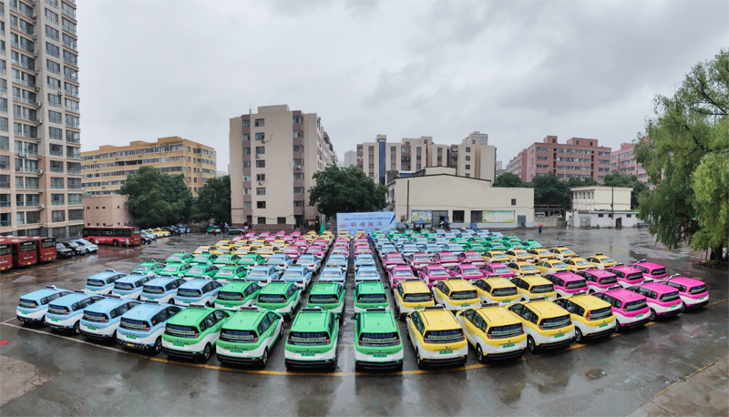 在2024年蘭州市“高考直通車”活動中,128輛出租車組成了壯觀的送考方陣。蘭州文明網(wǎng)供圖