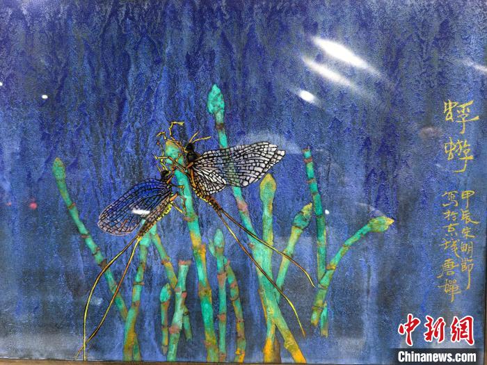 “蝶戀花”礦物顏料昆蟲復(fù)原畫作。任麗娜 攝