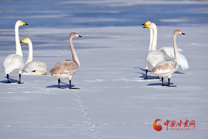目前,監(jiān)測到在渥洼池濕地越冬的11只大天鵝中,有4只幼年大天鵝,這也是渥洼池濕地首次有了幼年大天鵝越冬的記錄。