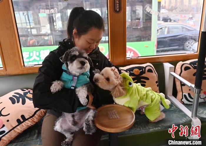 3月16日,吉林長(zhǎng)春,寵物和主人在車廂拍照留念。中新社記者 張瑤 攝