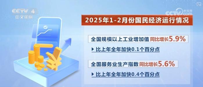 數(shù)據(jù)顯示,2025年1—2月份,工業(yè)生產(chǎn)較快增長,全國規(guī)模以上工業(yè)增加值同比增長5.9%,比上年全年加快0.1個(gè)百分點(diǎn)。服務(wù)業(yè)增勢較好,全國服務(wù)業(yè)生產(chǎn)指數(shù)同比增長5.6%,比上年全年加快0.4個(gè)百分點(diǎn)。市場銷售增長加快,社會消費(fèi)品零售總額83731億元,同比增長4.0%,比上年全年加快0.5個(gè)百分點(diǎn)。