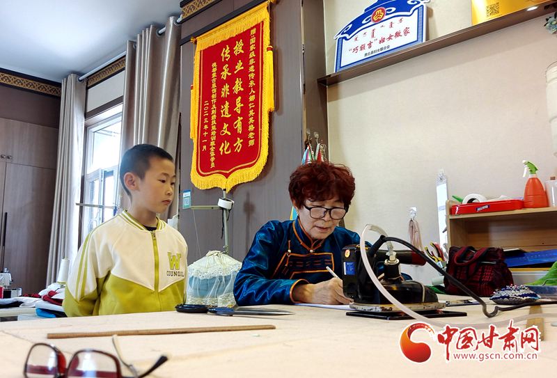 現(xiàn)年66歲的娜仁其其格歲月在她身上刻下了工匠的印記——由于常年埋頭制作蒙古族服飾,腰背已出現(xiàn)變形,眼睛近視。對(duì)她而言,肅北蒙古族服飾早已超越衣物本身,成為一個(gè)民族的“活態(tài)史書”。她說(shuō):“我這輩子就做了這一件事,我已經(jīng)老了,現(xiàn)在最要緊的,就是通過文字完整地將肅北蒙古族服飾制作技藝保留下來(lái),在后人的手中傳承壯大。”