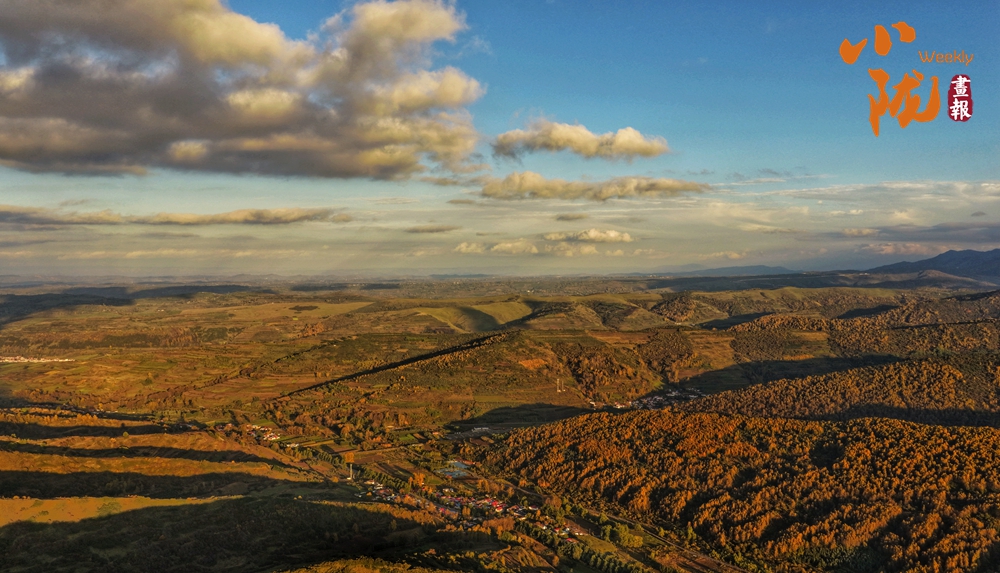 大北山被染成了暖黃色。極目遠眺,五彩斑斕的山脊,與藍天、山坳交織在一起,格外溫馨浪漫。漫步其間,宛如行走在金色的油畫里。