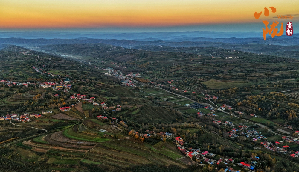 巍峨群山,連綿橫亙。古樸的村莊,山上的樹木,豐收的田地,如同披上了姹紫嫣紅的霓裳,顯得更加寧靜溫暖。