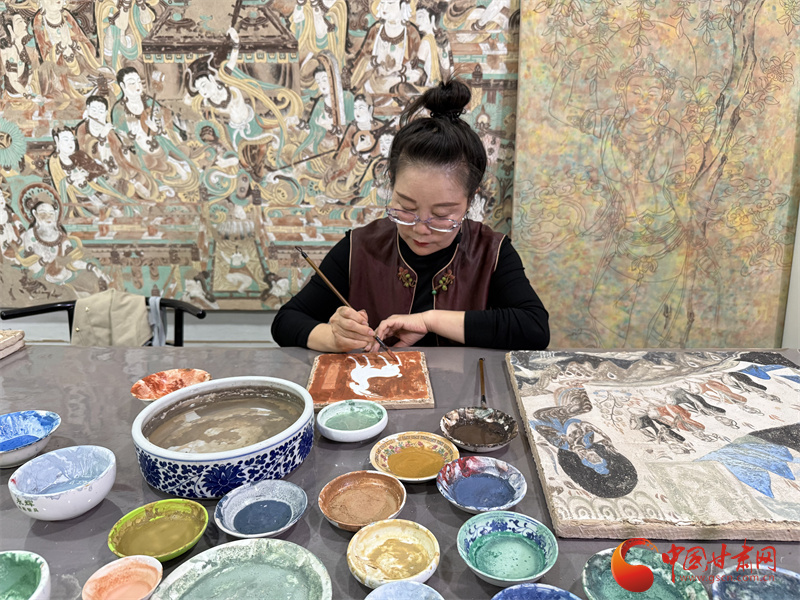 10月31日,由中央網(wǎng)信辦網(wǎng)絡(luò)傳播局、國家文物局政策法規(guī)司指導(dǎo),中國互聯(lián)網(wǎng)發(fā)展基金會特別支持,甘肅省委網(wǎng)信辦、省文物局主辦,張掖、嘉峪關(guān)、酒泉市委網(wǎng)信辦與敦煌研究院、中國甘肅網(wǎng)、鳳凰網(wǎng)甘肅頻道共同承辦的“何以中國|壁畫里的中國·當(dāng)AI遇見小飛天”網(wǎng)絡(luò)主題宣傳活動(dòng)采訪了敦煌石粉彩繪技藝的非遺傳承人王亞林。