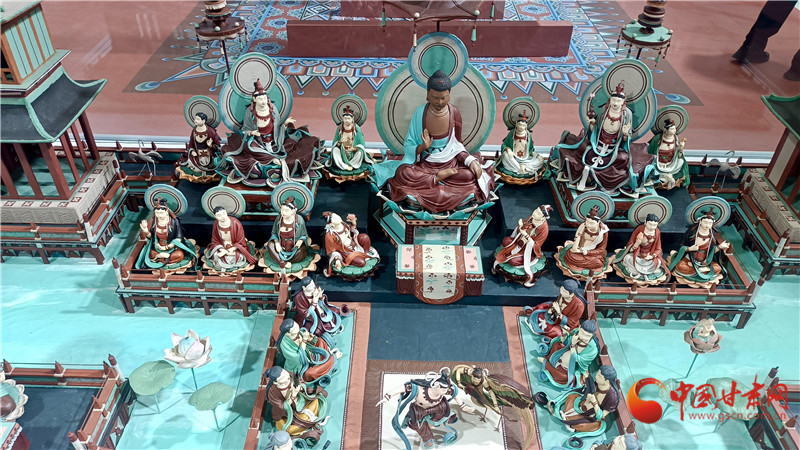 當(dāng)這座長2.4米、寬1.4米、高0.8米的《觀無量壽經(jīng)變》問世,30多個人物從壁畫中飛出來,面塑也讓《觀無量壽經(jīng)變》以立體的方式完美呈現(xiàn)。