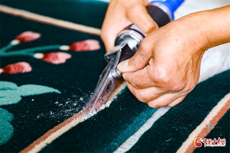 手工地毯,是環(huán)縣非物質(zhì)文化遺產(chǎn)之一,已有近半個世紀(jì)的傳承,慕粉萍從事這項技藝也有30多年了。