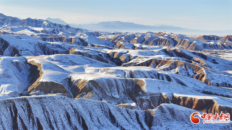 時下,位于民樂縣境內的祁連山脈巍峨群峰被皚皚白雪覆蓋,蔚為壯觀。