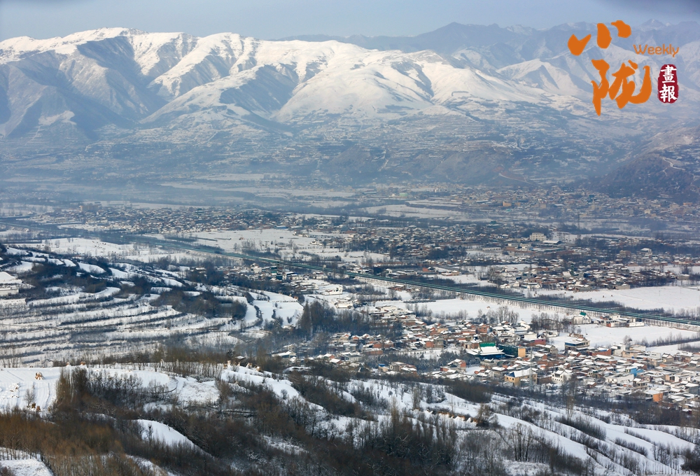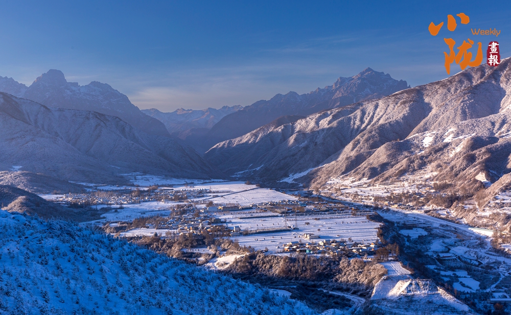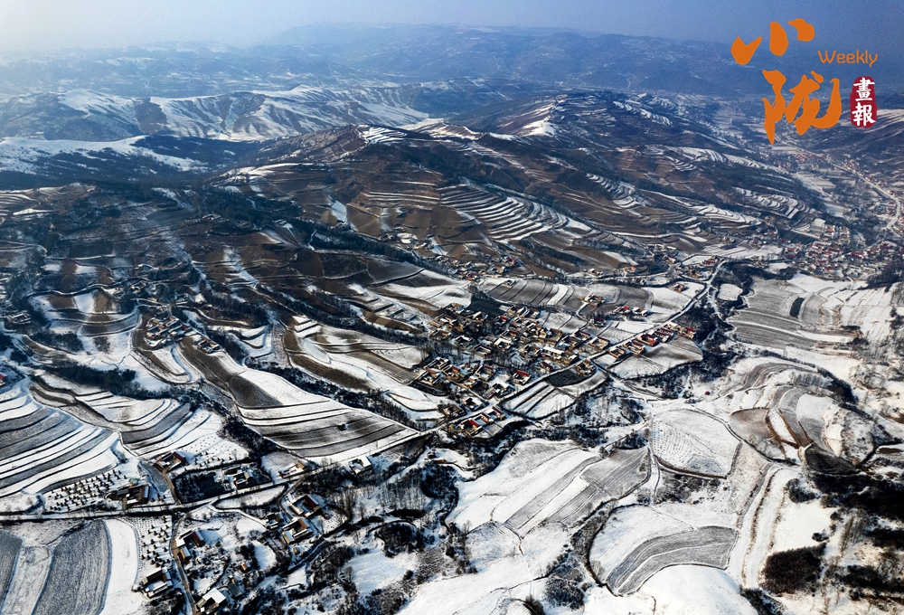 道路、溝壑、樹木、村落,被皚皚的白雪所覆蓋,呈現(xiàn)出一片“雪落山川白,美景入畫來(lái)”的美麗景象。