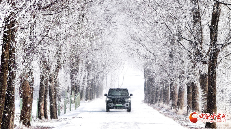 一夜之間,天地銀裝素裹。晶瑩霧凇或綴滿枝頭,或輕覆草木,將道路兩旁幻化成如夢冰雪世界。寒風掠過,霧凇凝霜疊雪,兼具北國壯闊蒼茫與冬日溫柔靜謐。