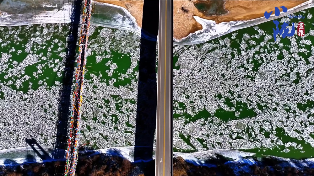 冰河如一道銀練,線條簡勁飽滿,在雪原上留下凝練的筆痕,每一處轉(zhuǎn)折,皆蘊著大地深藏的遒勁力道與蒼茫氣象。