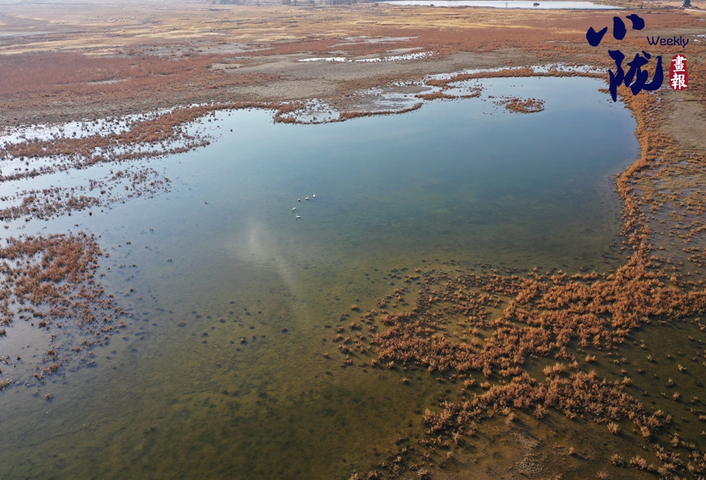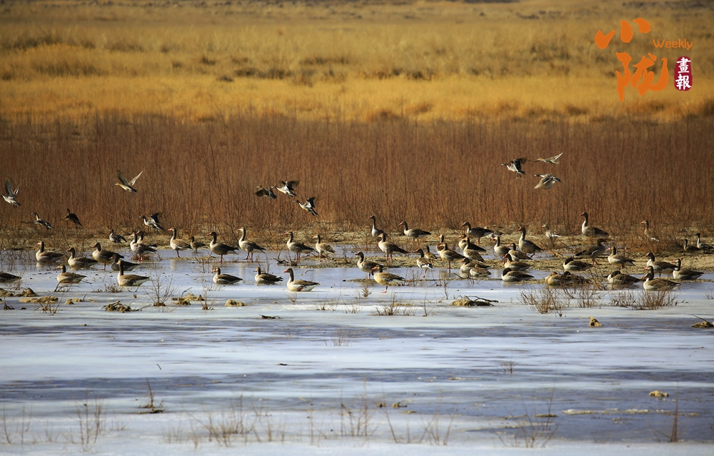 冬日濕地,鳥(niǎo)類(lèi)或靜立冰面,或翩然飛越金黃蘆葦。每年候鳥(niǎo)遷飛之季,赤麻鴨等國(guó)家重點(diǎn)保護(hù)鳥(niǎo)類(lèi)在此棲身,鳥(niǎo)鳴與葦浪聲交織回蕩,宛如自然寫(xiě)就的生態(tài)詩(shī)篇。
