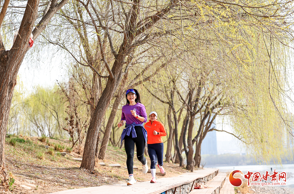 3月24日,市民在蘭州市城關(guān)區(qū)馬拉松公園跑步健身。